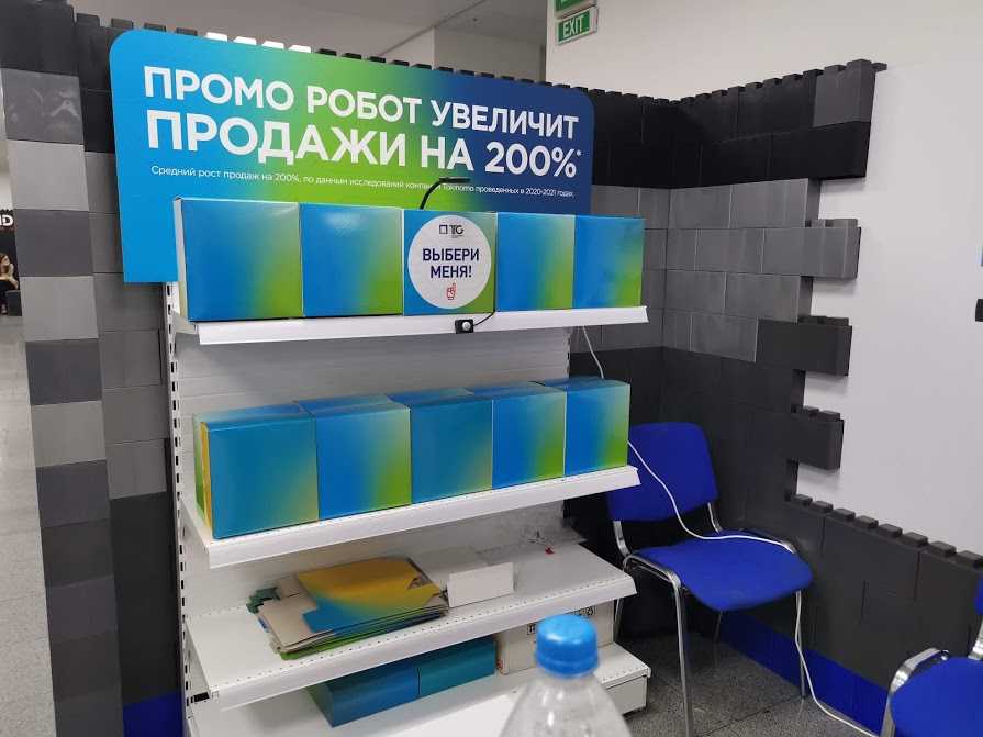 Среди новых методов визуального мерчандайзинга для увеличения продаж – использование промороботов. Например, роботизированное устройство Tokinomo, которое можно установить на полке магазина. В устройство вмонтирован датчик движения, который реагирует на приближающегося покупателя. Благодаря сочетанию технологий света, звука и движения роботизированный интерактивный дисплей помогает продуктам «двигаться», робот может обратиться к покупателю с приветствием или призывом