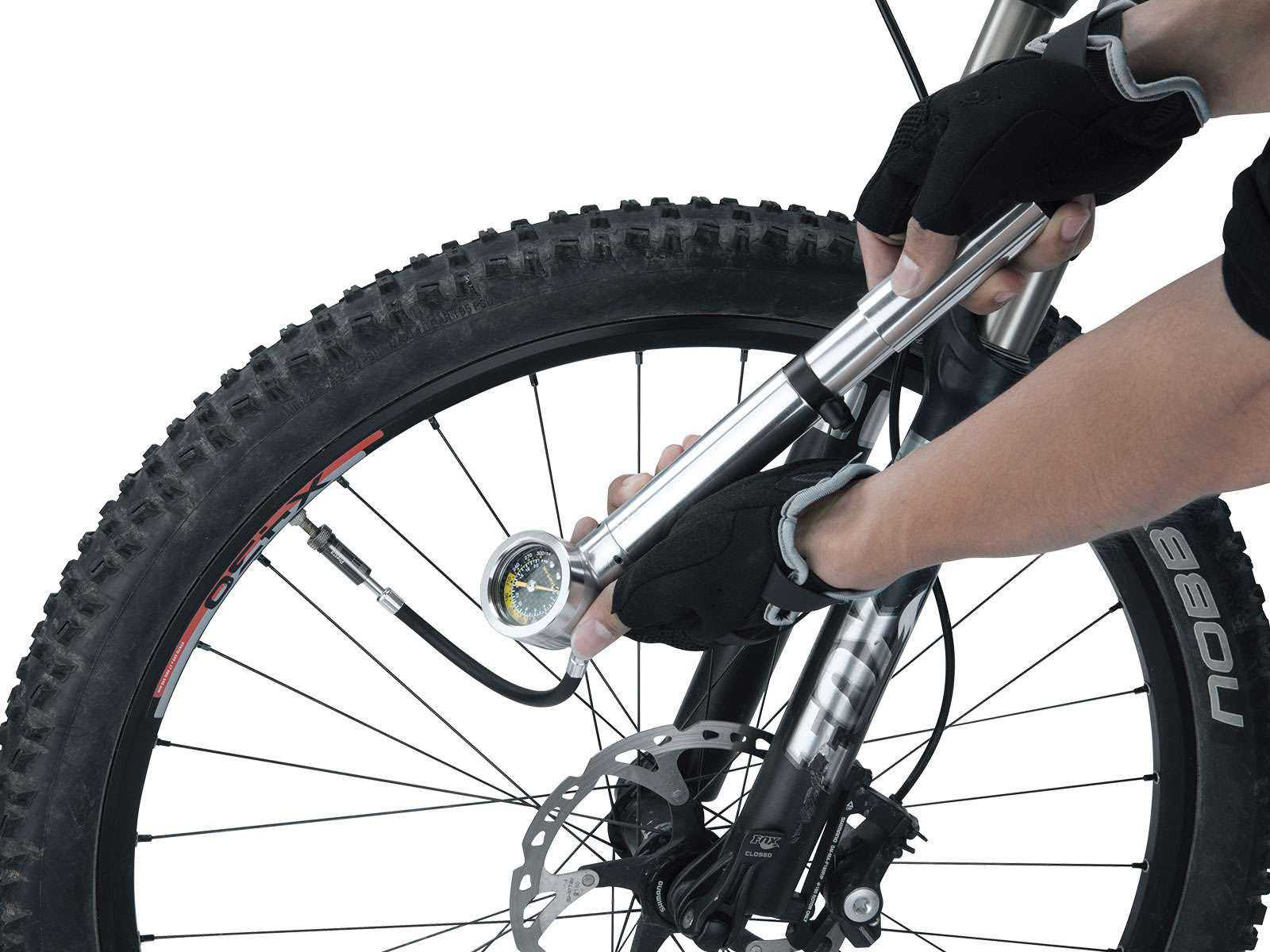 Сколько бы ни было воздуха в камерах, колеса перед выездом обязательно подкачивают. Оптимальное давление для горного велосипеда 2,8-4,5 Bar. Если нанос не оснащен датчиком, необходимо накачать покрышки в соответствии с собственным весом. От правильности выполнения процедуры зависит безопасность велосипедиста, легкость хода, долговечность конструкции.