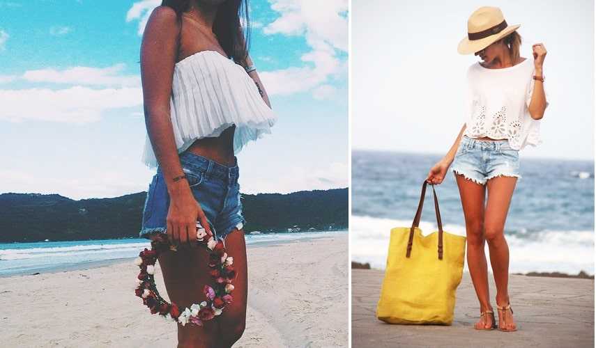 Если решили облачиться в цветастое бюстье, подберите однотонные шорты. В прохладную погоду накиньте кардиган. Длинных вещей, основательно закрывающих бедра, лучше избегать.