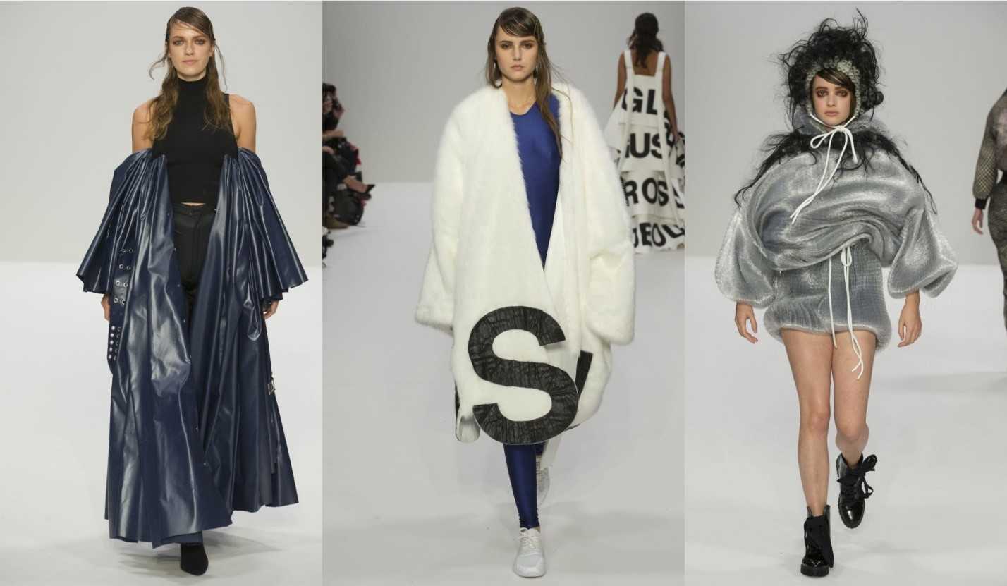 Один из самых ярких показов Лондонской недели моды устроили дизайнеры Swedish School of Textiles. Они вывели на подиум моделей в невероятных одеяниях, которые трудно назвать не только платьями, но и нарядами в целом – необычные формы, головные уборы, а также огромные застежки и молнии.