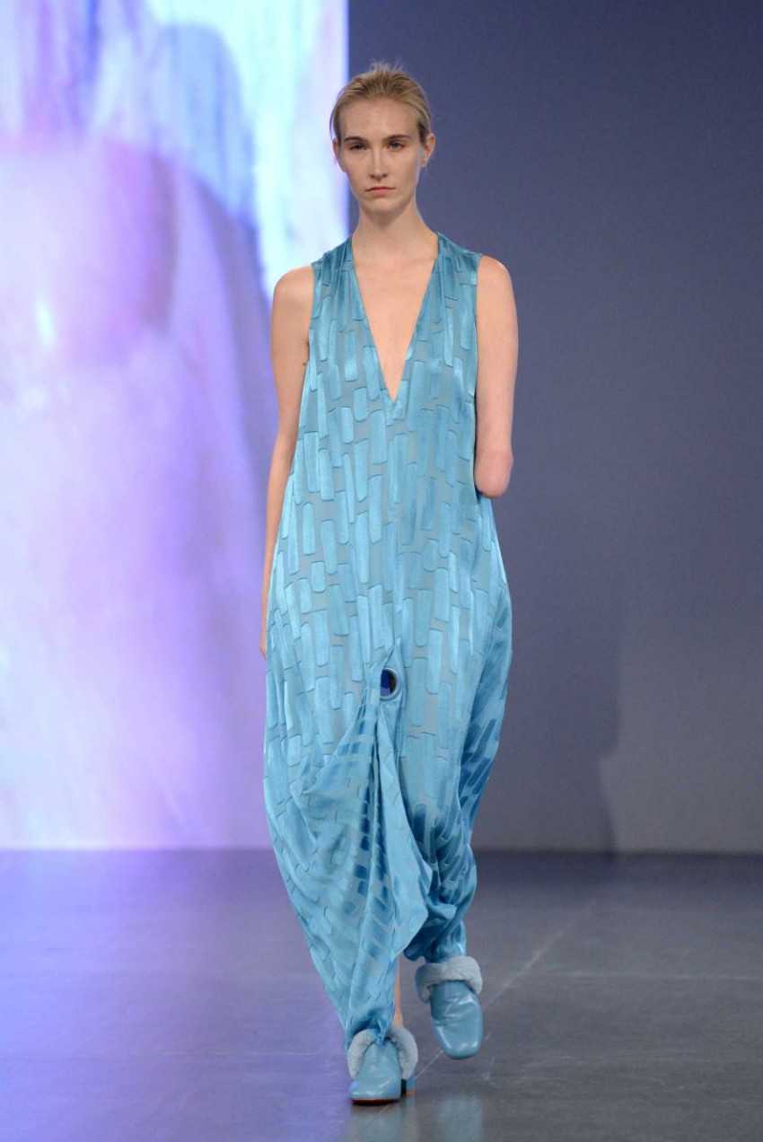 Еще одним нашумевшим возвращением стала модель и активная участница кампаний в поддержку людей с ограниченными возможностями Келли Нокс. Она вернулась на подиум в качестве модели лондонского бренда женской одежды Teatum Jones.