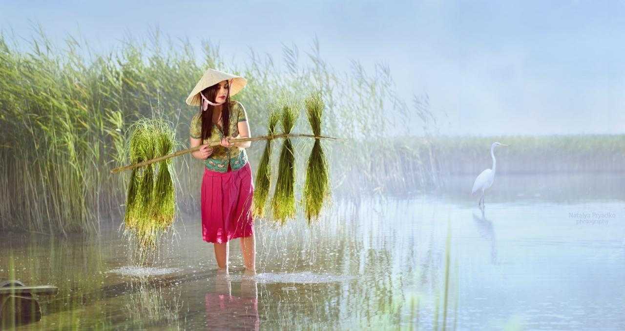 На фотослете-2019 Наталья Прядко проводила воркшоп на азиатскую тему. Было отснято много кадров в разных ракурсах. Но журнал Vogue опубликовал именно тот кадр, в котором сборщица риса упирается в край кадра. Такая композиция передает ощущение усталости, большого объема проделанной работы, трудного пути, который остался позади. И нет просвета впереди. Непростая история. Сравните этот кадр с другими фото из серии.