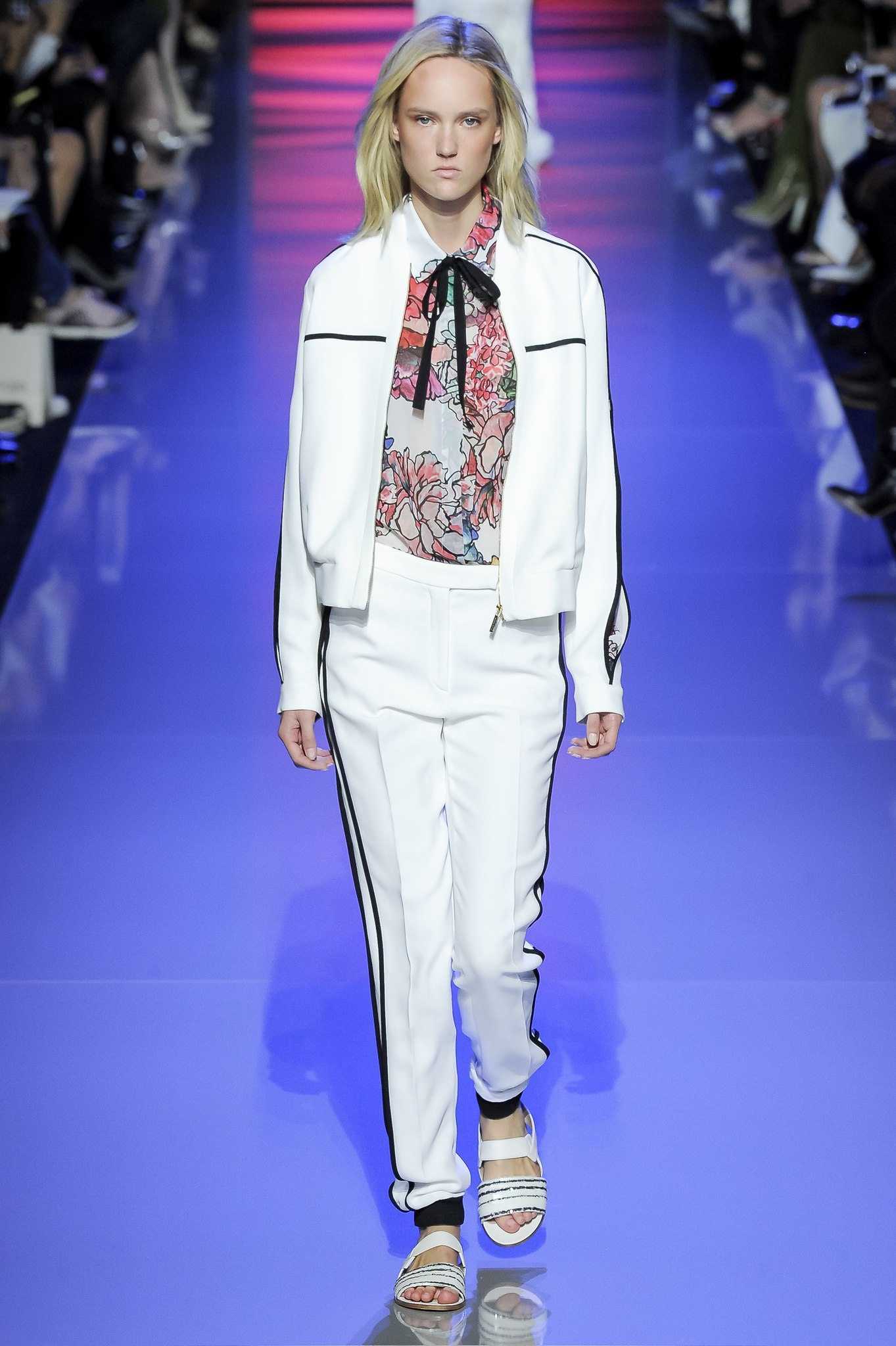 Показ Versace поразил платьями из атласа и шелка с асимметричными швами и косыми разрезами. Такие изделия были представлены преимущественно в благородной насыщенной палитре.