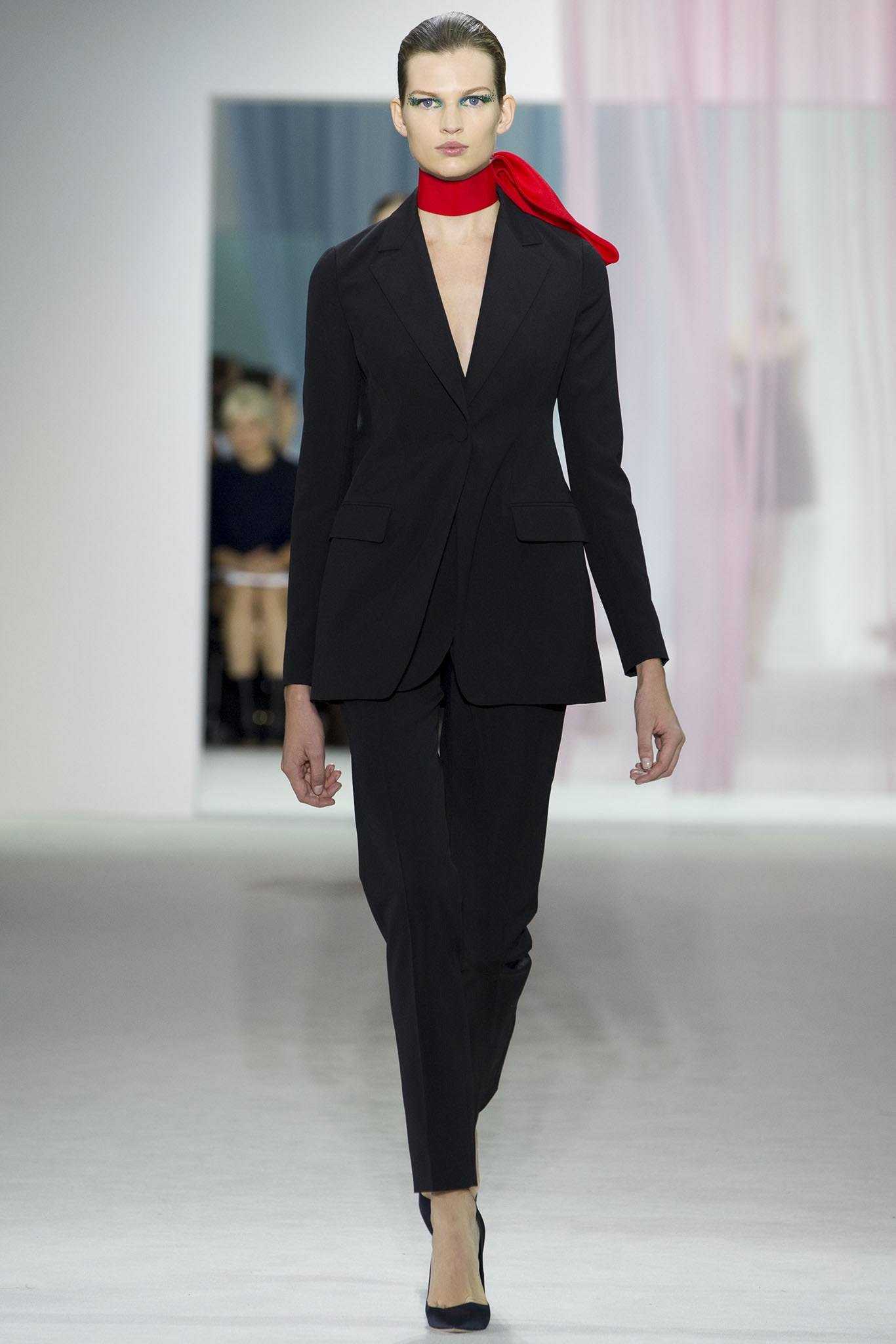 Монохромные костюмы различных фасонов по-прежнему на пике популярности – этот факт подтвердили не только дизайнеры, но и гости показа.