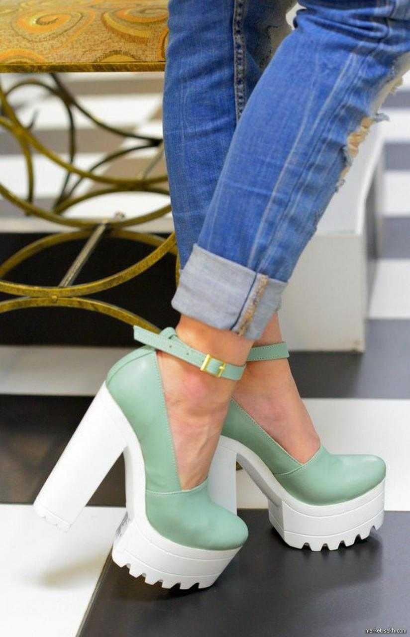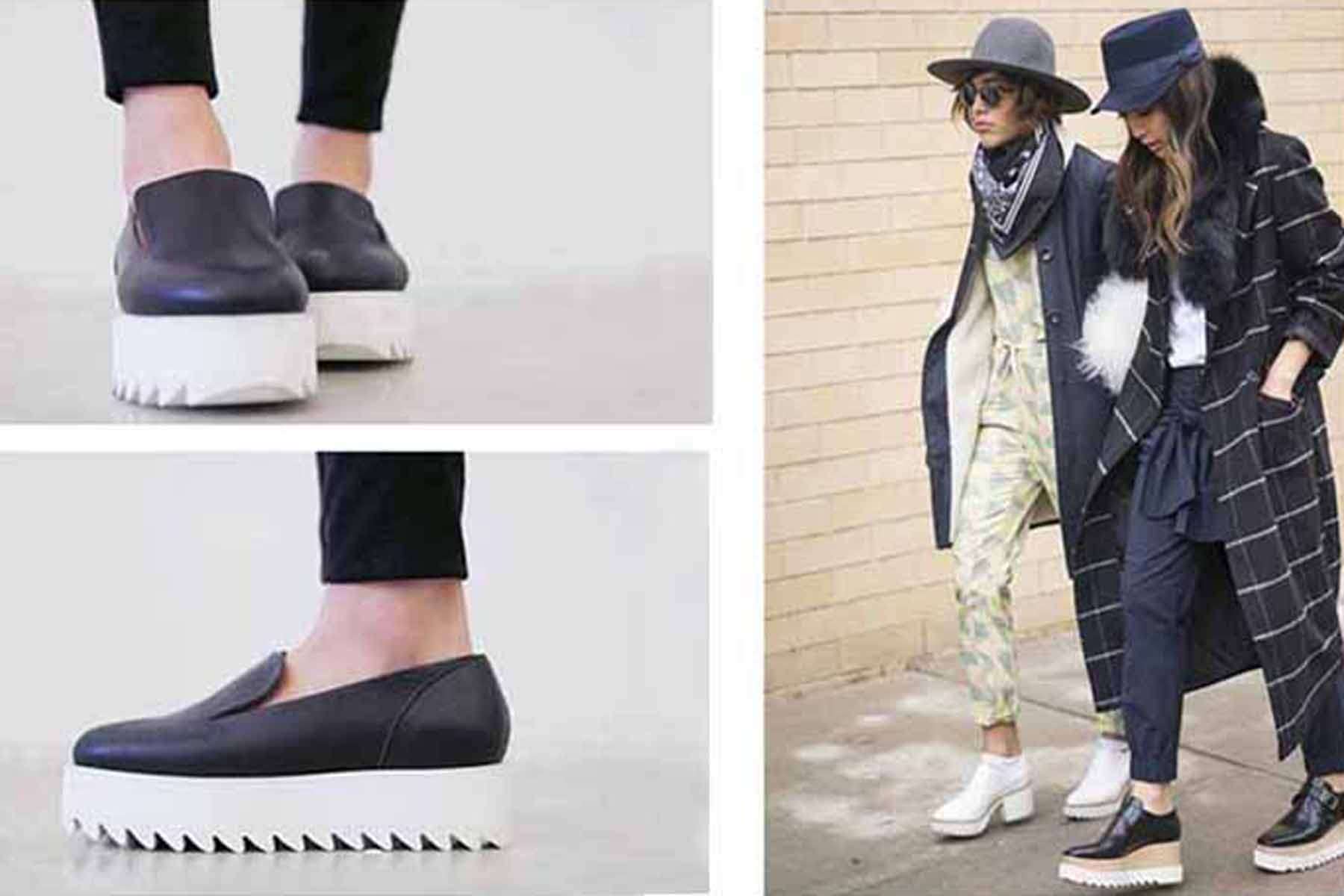 Помимо сандалий, платформа может быть представлена в моделях кроссовок и закрытых туфлях в стиле спорт-шик.