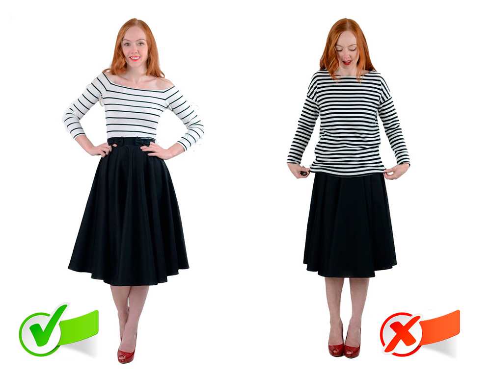 Не покупайте юбки с заниженной талией. Ближайшие несколько лет в моду они точно не вернутся. Примеряйте модели с завышенной талией. С их помощью вам удастся создать правильный силуэт, вне зависимости от вашего роста и фигуры.