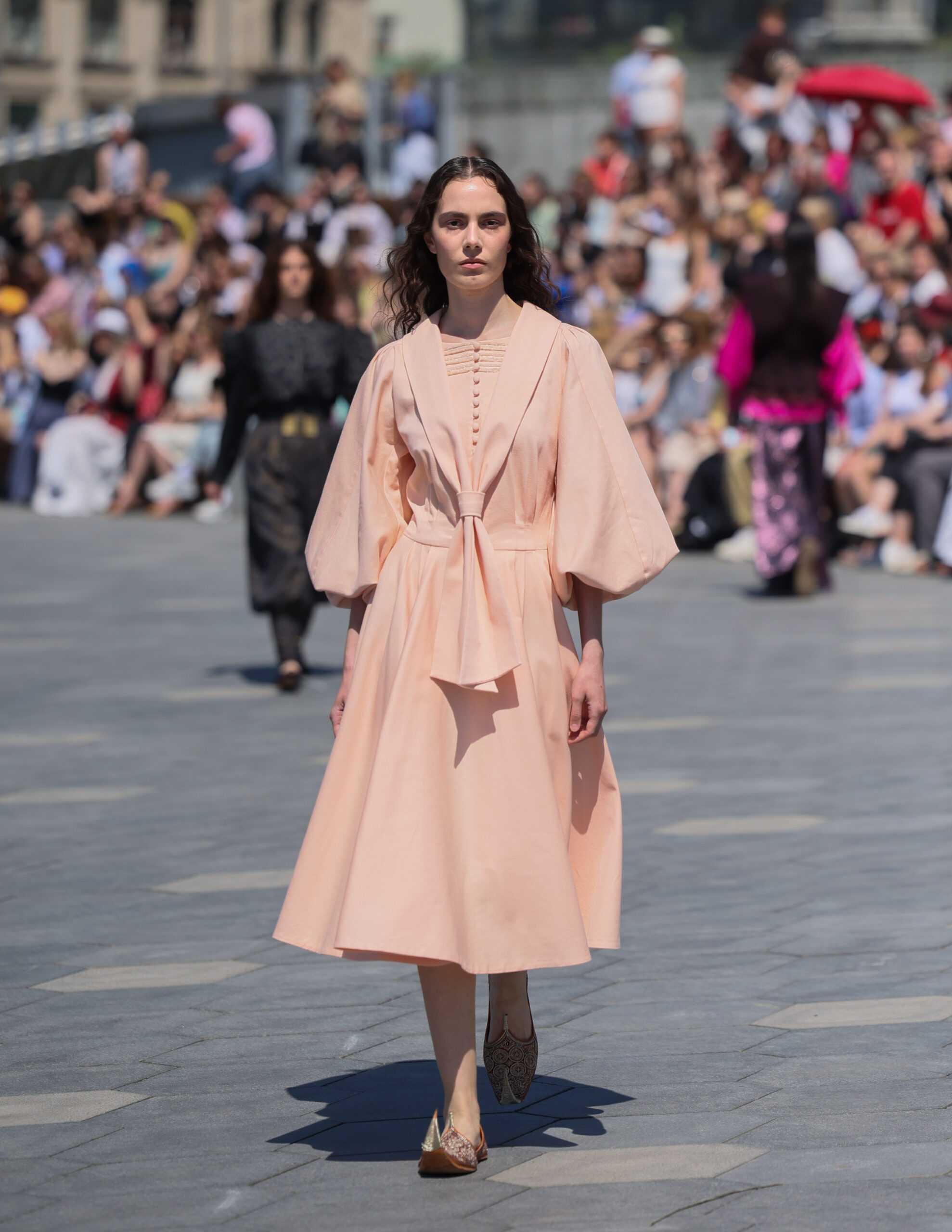 Шоу выпускников программы ДПО «Дизайн одежды» Британской высшей школы дизайна прошло в Большом амфитеатре парка «Зарядье». В показе приняли участие бывшие студенты сразу трех выпусков — 2020, 2021 и 2022 годов. Шоу, в котором приняли участие 15 дизайнеров, было разделено на четыре блока. В первом молодые таланты размышляли на тему формы и пропорций. Отличительными чертами этого блока стали асимметричный крой, элементы деконструкции, эксперименты с формой классических элементов. Второй блок был посвящен взаимодействию цвета и материала. Модели шли по подиуму в фантазийных ярких нарядах, украшенных перьями, драпировкой, акцентными принтами. Живописный третий блок был вдохновлен прерафаэлитами. В нем были представлены наряды с плавными линиями и чистыми цветами. Четвертый блок был наполнен авангардными образами, в которых дизайнеры использовали сложный крой и чистоту форм.