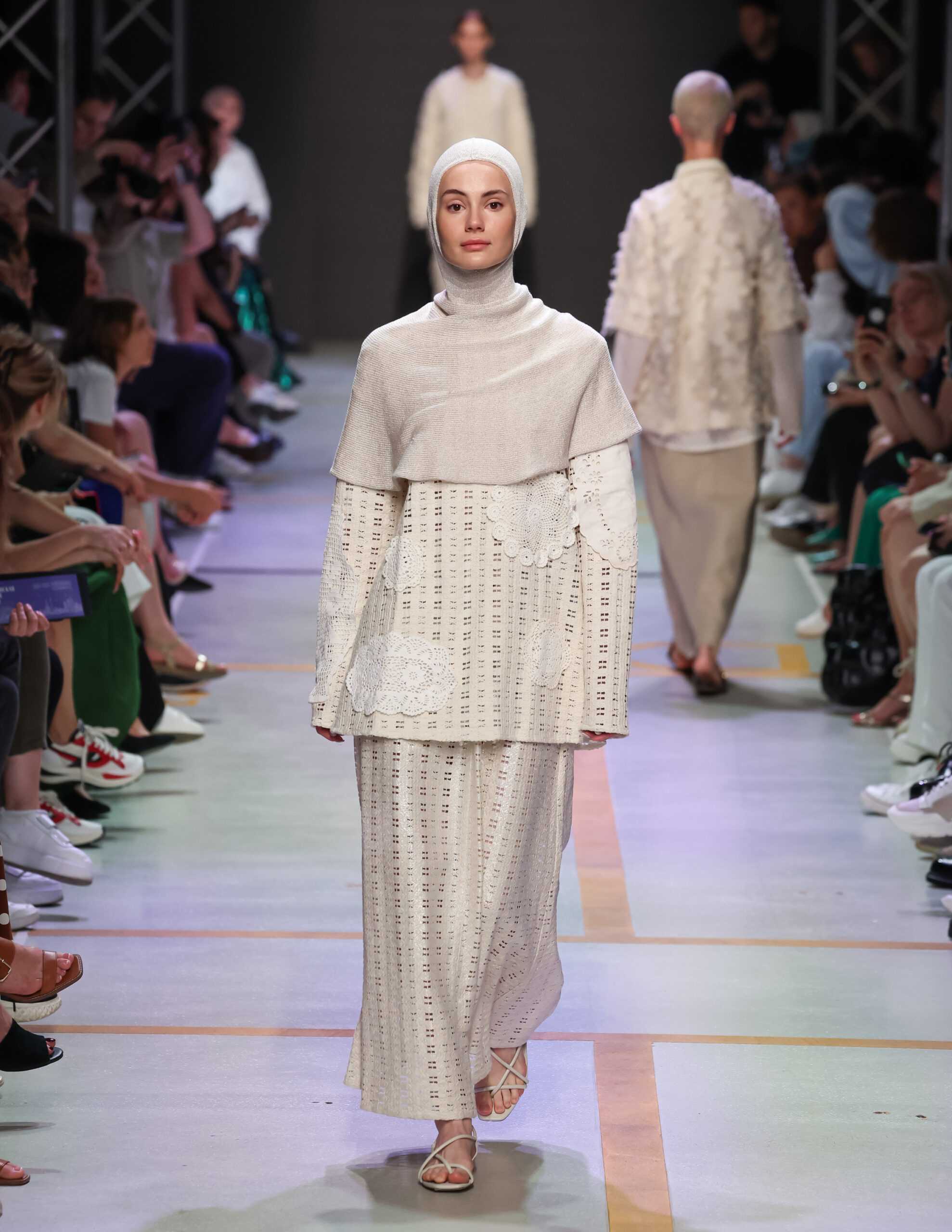 Дизайнер бренда Зайнаб Сайдулаева в своих коллекциях всегда экспериментирует с культурными кодами. На этот раз вдохновением для новой линейки послужили культурное наследие Дагестана и традиции русского крестьянства, отраженные вышивкой ришелье. В коллекцию, выполненную преимущественно в кремово-пастельных тонах, помимо брючных костюмов, струящихся юбок макси и жакетов, в переосмысленном виде вошел традиционный дагестанский предмет одежды — пастушья бурка. Уникальным моментом коллекции стало то, что все изделия с вышивкой изготовлены из винтажных салфеток и представлены в единственном экземпляре. Главным аксессуаром коллекции стали балаклавы.