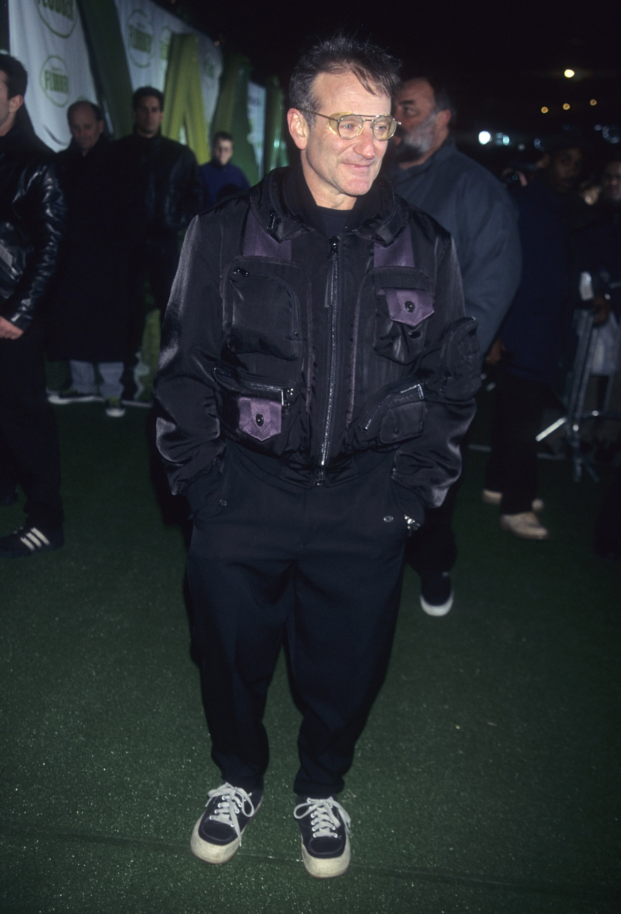 В 1997 году Уильямс появился на премьере фильма «Флаббер» в культовом черном бомбере Issey Miyake в стиле милитари. Актер дополнил свой образ очками в тонкой золотой оправе, черными мешковатыми брюками и классическими черными кедами с белой подошвой. Этот наряд разительно отличался от безвкусного костюма учителя, который ему пришлось носить в фильме, и был весьма необычным выбором для подобных мероприятий того времени.