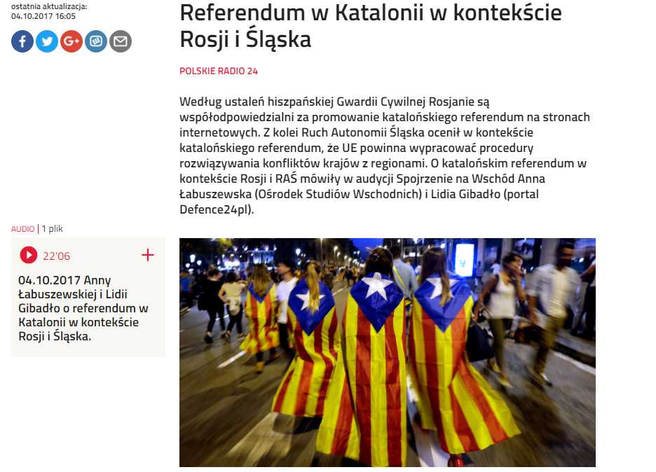 Так, например, Варшава углядела интерес Кремля в вопросе выхода Каталонии