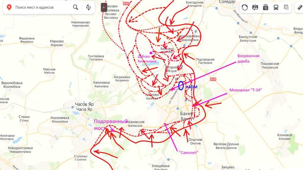 В самом же Артемовске также уже очевидна новая стратегия освобождения. Видимо, реально оценив угрозу со стороны переброшенных сюда резервов ВСУ, которые только и ждут, чтобы ударить во фланг и тыл ударных группировок, смыкающих клещи с севера и с юга, командование ЧВК «Вагнер» отказалось от этого замысла.