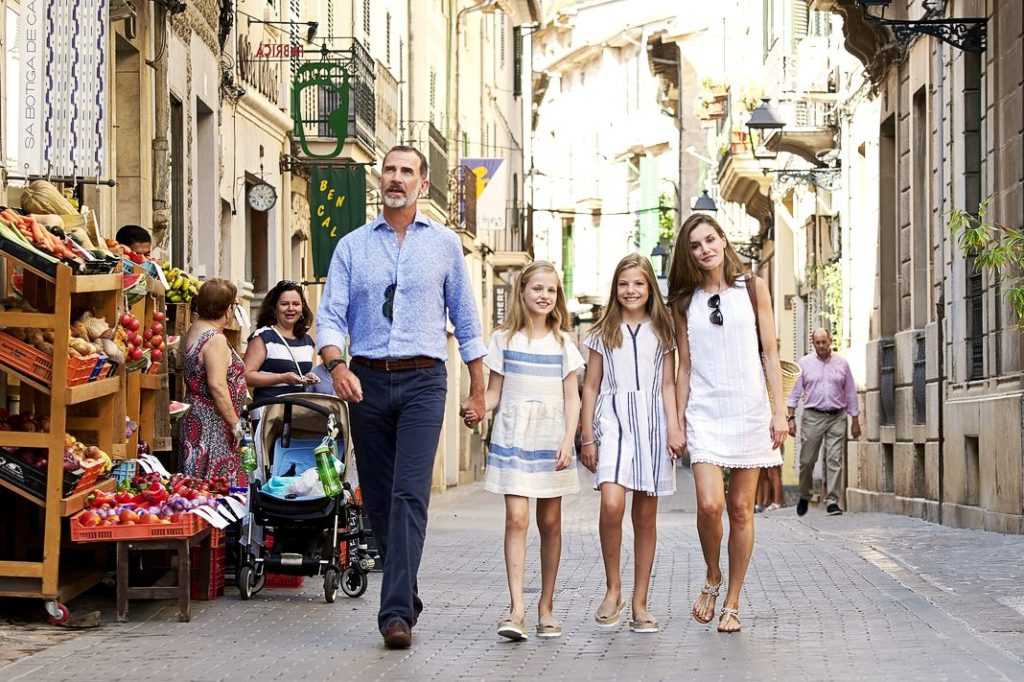 Король Испании Филипп VI, королева Испании Летисия и их дочери принцесса Леонор и принцесса София посещают музей Кан Прунера в Пальма-де-Майорка, 6 августа 2017 г.