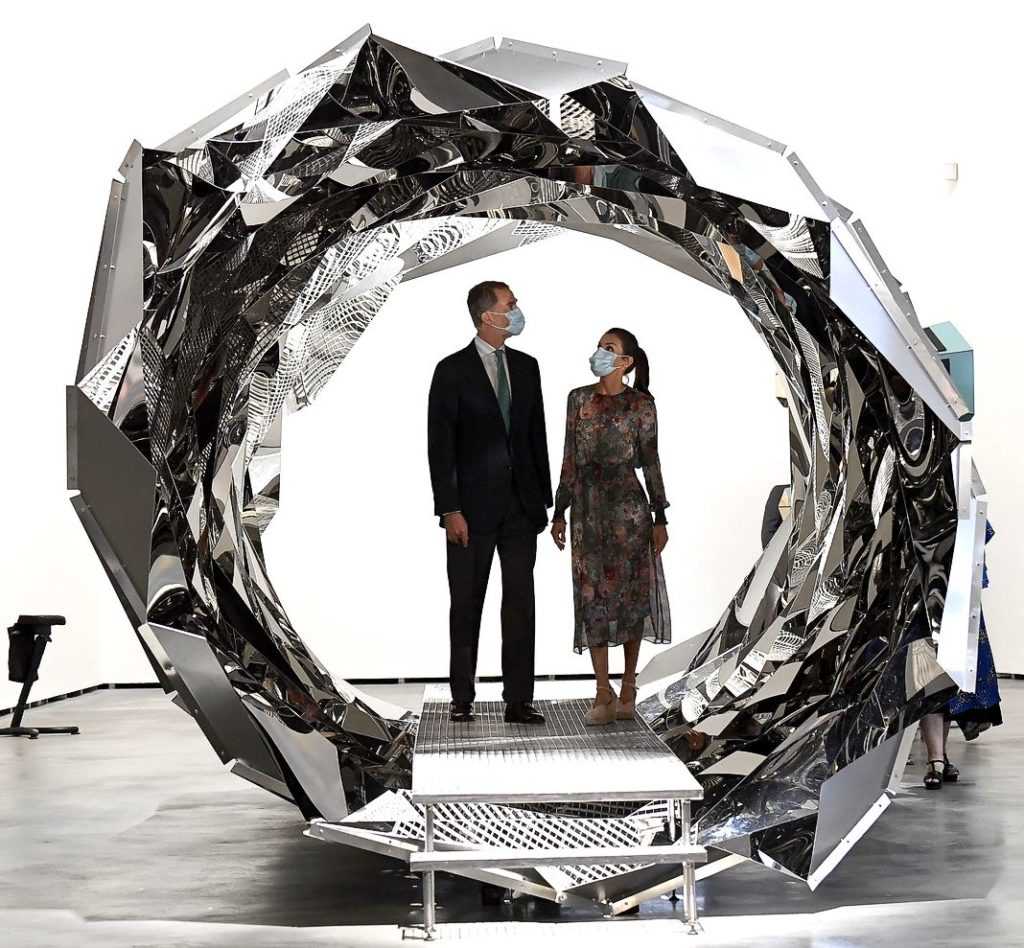 Король Испании Филипп и королева Испании Летисия на выставке Олафура Элиассона «В реальной жизни» в музее в Бильбао, 17 июля 2020 г.
