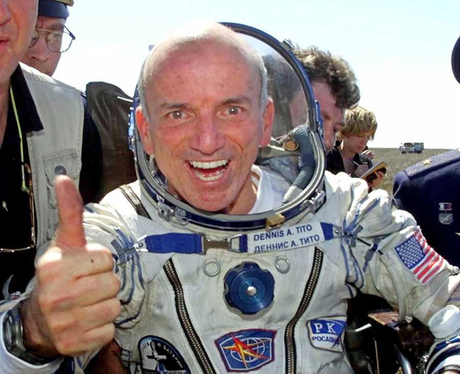 - Первый космический турист Деннис Тито после возвращения на Землю, 6 мая 2001 года