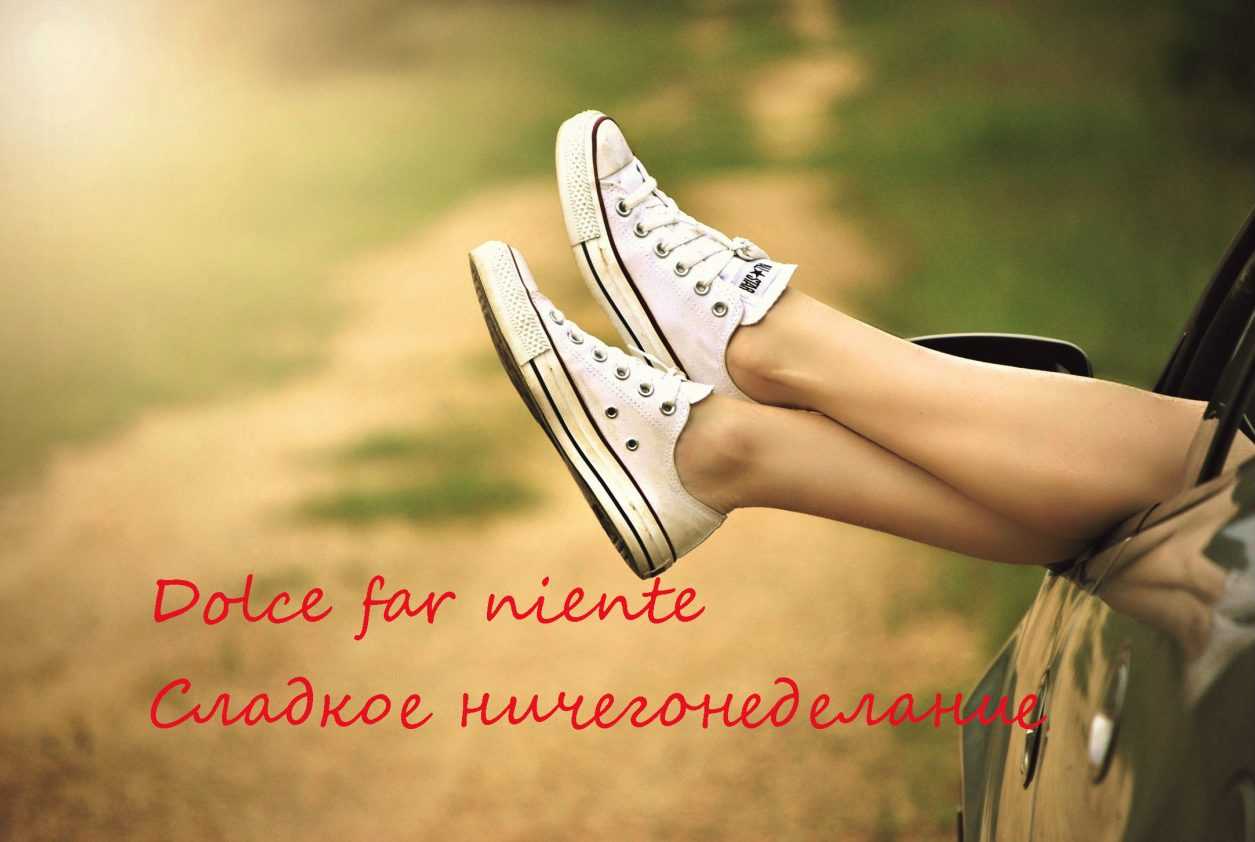 Dolce far niente — это типично итальянское выражение, которое является частью образа жизни. Оно означает заниматься тем, что действительно нравится и доставляет радость.