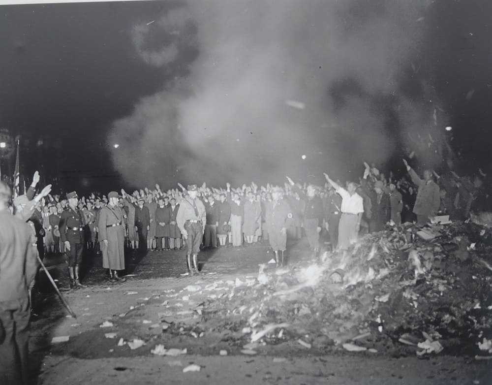 Сожжение книг на Бебельплатц в Берлине, 1933 год. Книги Ремарка были уничтожены одними из первых
