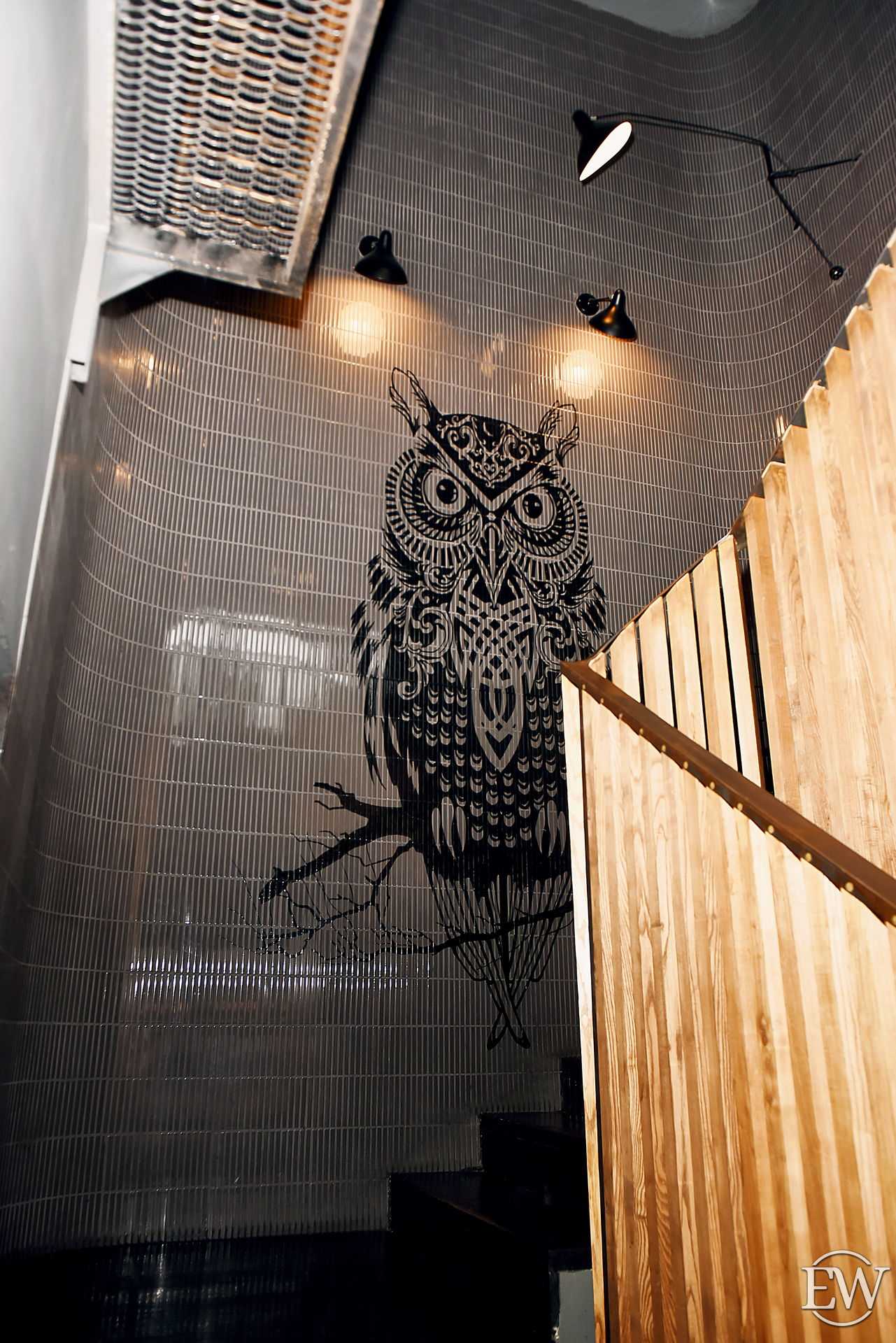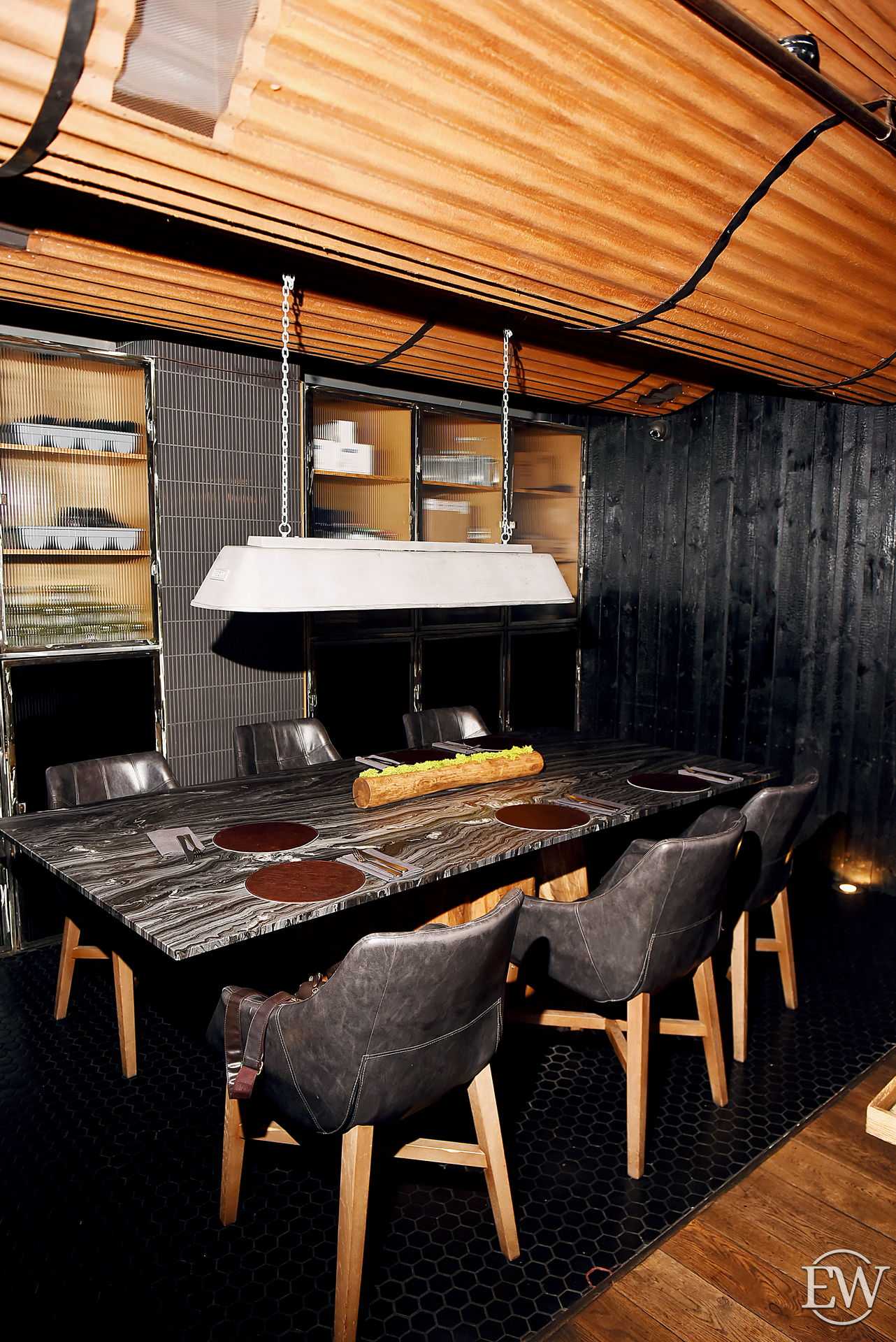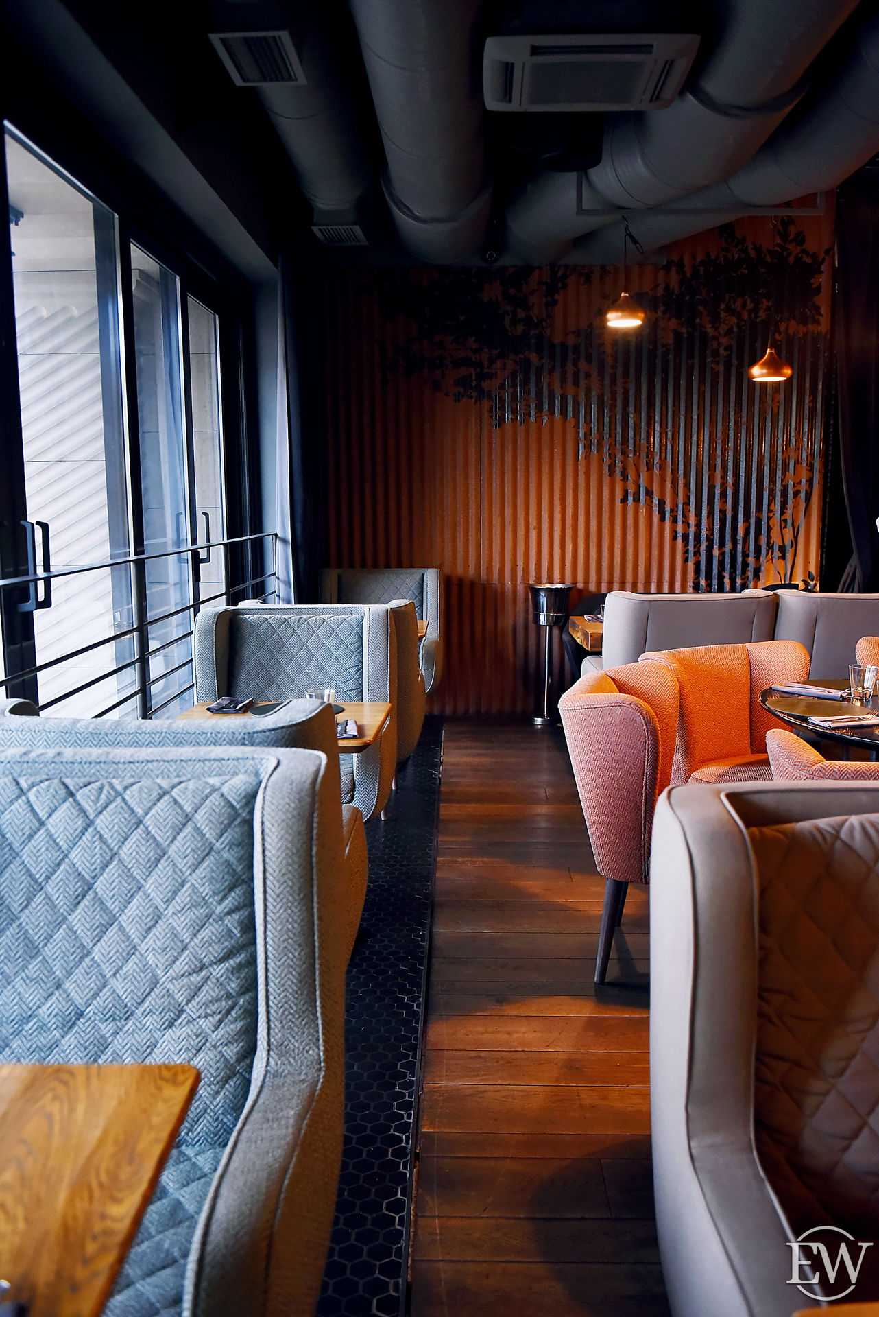 Стоит начать приглядываться к деталям, и становится ясно: ни один предмет здесь не появился «просто так», все наполнено смыслом и функциональностью: экстра-комфортабельные кресла, в точности повторяющие модель сидений бизнес-класса скандинавских авиалиний эпохи 80-х, диваны-гнезда с удобными спинками, массивные деревянные столы из трёх видов дуба. Идея давать вещам вторую жизнь здесь также нашла своё отражение: художественная стена, переработанная из кровельного железа, увенчала собой второй этаж, а некогда опалённые доски органично превратились в потолочные балки.