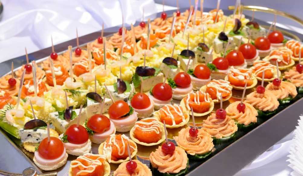 Сложный стол не означает, что нужно приготовить десять видов салатов и три вида горячего. Блюда не обязательно должны быть вычурными, но по торжественному поводу на столе должно быть что-то такое, чего не готовят дома каждый день. Если есть сомнения, что гостям будет неловко есть какое-то блюдо, лучше его не готовить. Например, не стоит подавать мидии и устрицы, если кто-то из приглашенных может не знать, как их есть.