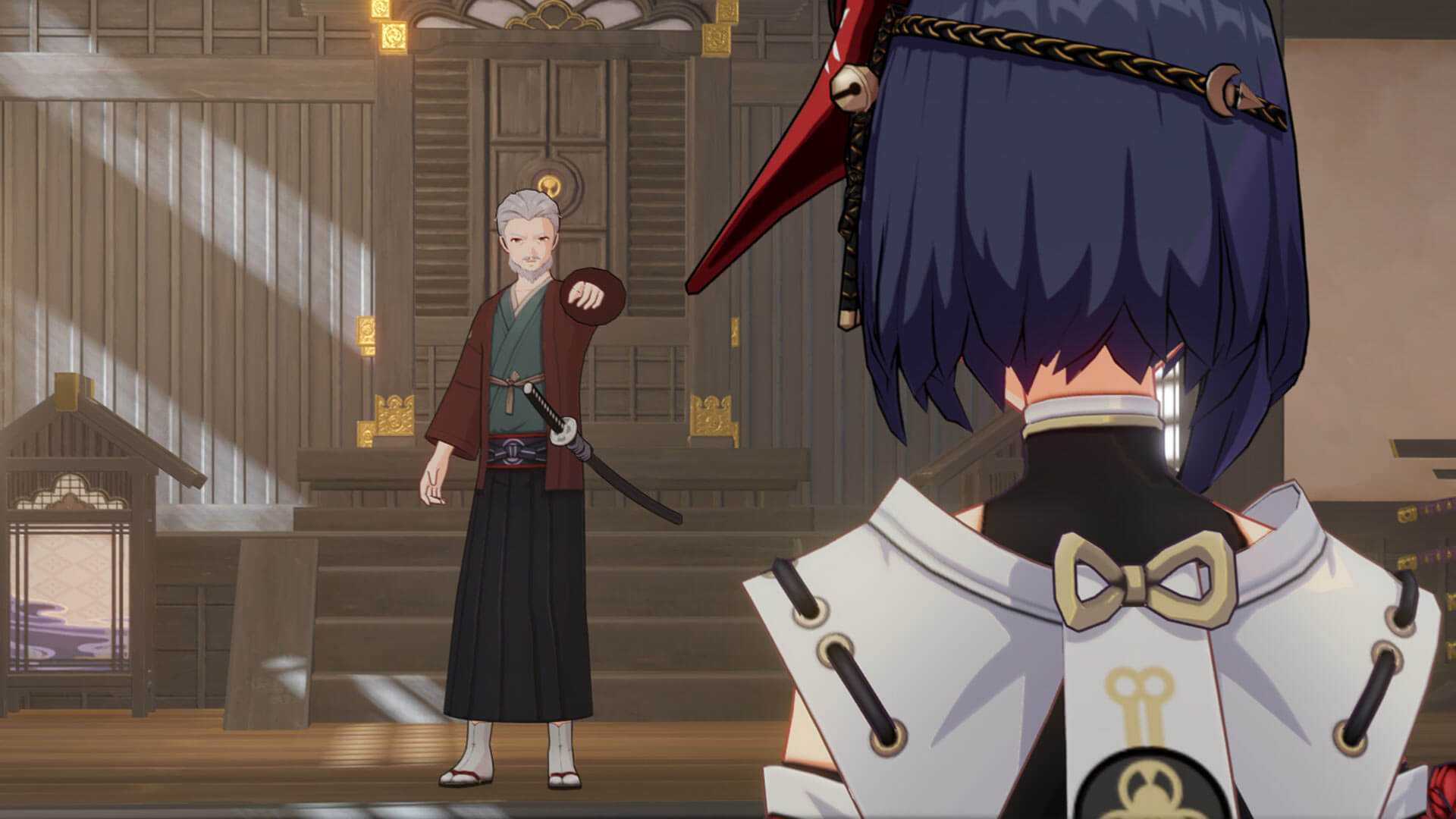 Предъявляем доказательства о предательстве Саре, но она отказывается верить, поэтому отправляется к главе комиссии Кудзё Такаюки, чтобы поговорить с ним лично. Пропустить такое разоблачение мы не можем, поэтому следуем за ней. Перед уходом Яэ дает нам омамори, амулет Храма Наруками, который должен будет каким–то образом помочь в противостоянии с Райдэн.