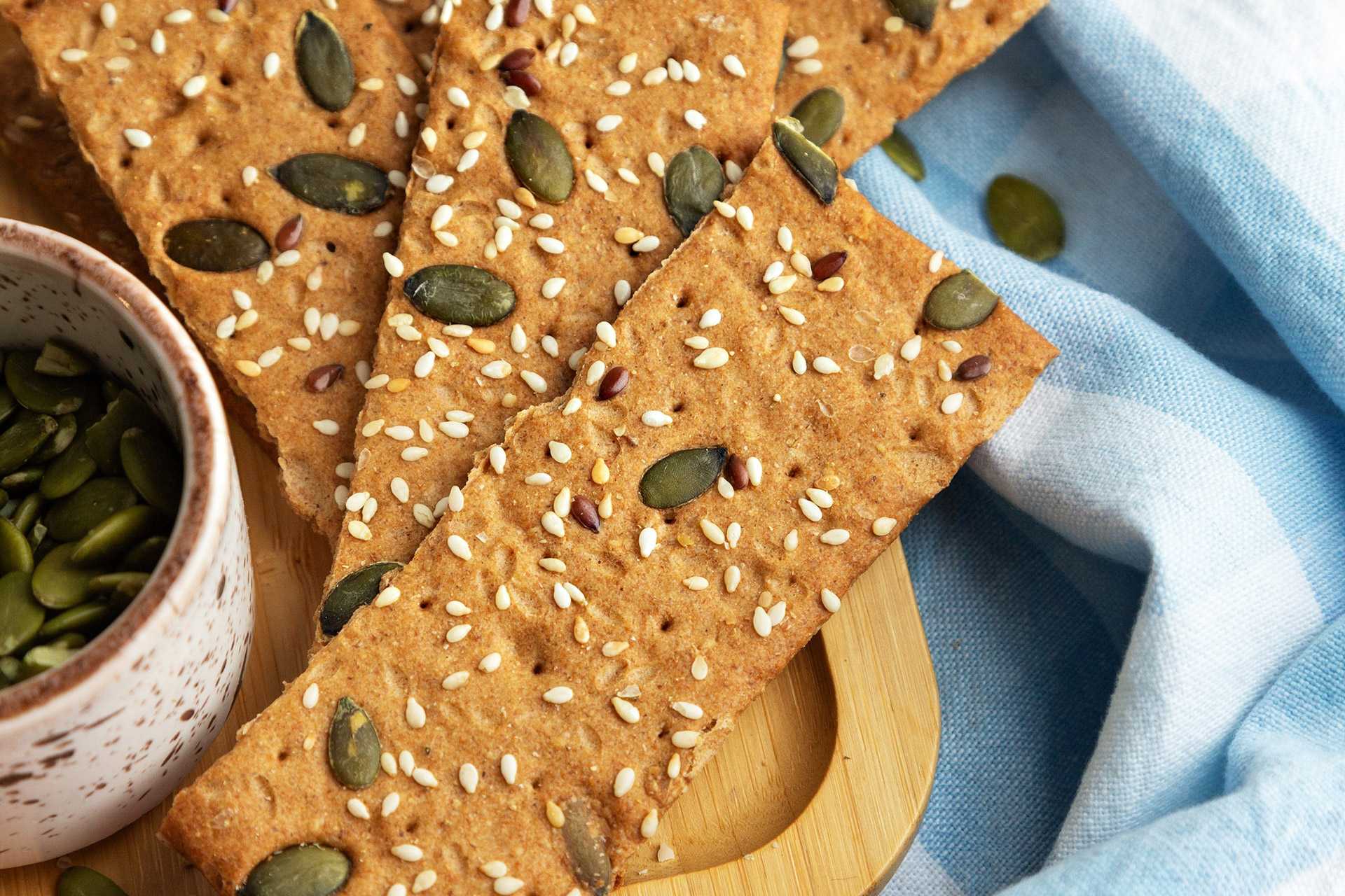 Их основное преимущество – богатая обсыпка. Помимо семян подсолнечника, тыквы, льна, в ее составе в большом количестве присутствуют киноа и кунжут, которые делают продукт настоящим суперфудом. Также они считаются полноценным источником белка, содержат витамины группы В, минералы и антиоксиданты.