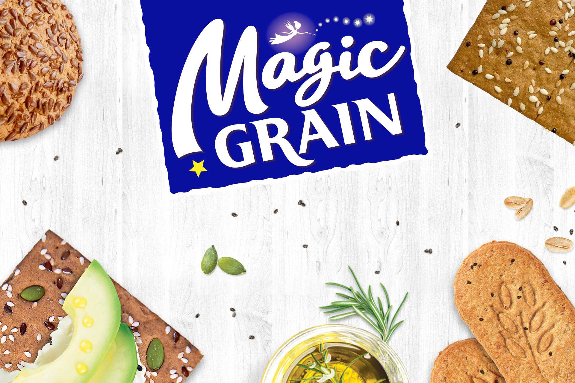 Magic Grain – это оригинальные продукты, которые содержат натуральные и безопасные ингредиенты. В них не используются пальмовое масло, искусственные красители, усилители вкуса. Например, в составе хрустящих хлебцев только премиальные ингредиенты, среди которых высокоолеиновое подсолнечное масло, морская соль, оливковое масло Extra Virgin. Они отличаются многообразием вариантов посыпок и высоким содержанием семян и злаков. Хлебцы ТМ Magic Grain выпекаются по европейской технологии, без обжаривания. Это выделяет их среди представленных на рынке аналогов. В составе хлебцев используются разные виды цельнозерновой муки. Она считается более полезной, чем мука высшего сорта, так как содержит большое количество пищевых волокон, а также богата высоким содержанием клетчатки, витаминами Е и В, микроэлементами (кальций, железо, калий) и другими полезными свойствами.