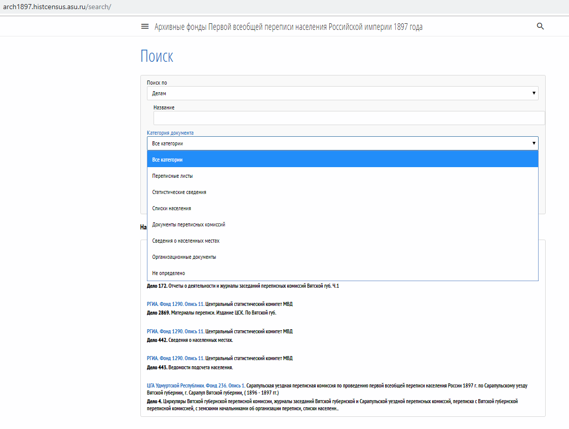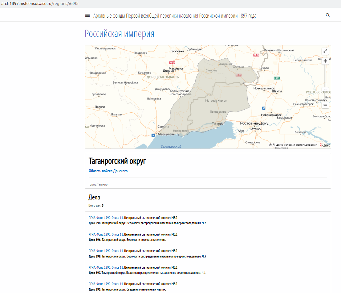 Сайт с архивными фондами Всеобщей переписи населения 1897 года