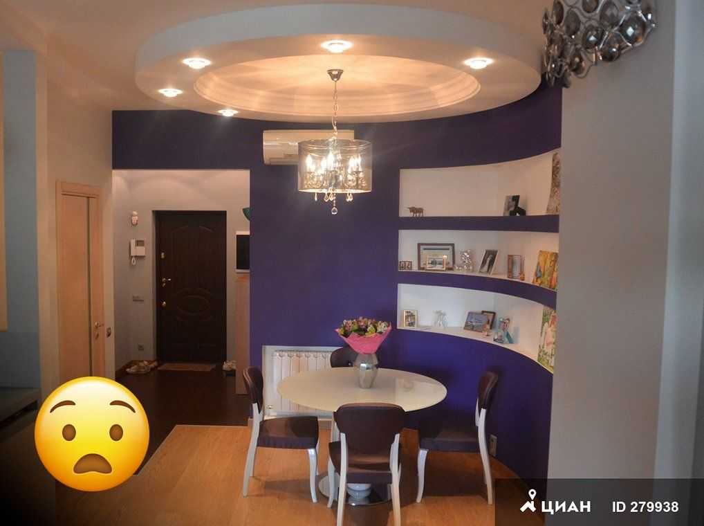 Откуда такая любовь к резьбе по гипсокартону? Все эти искусственные конструкции смотрятся очень громоздко. Произвести впечатление на гостей можно и по-другому. Все понимаем, ожидали, что будет круто и соседи скажут “Вау!”. Но, громоздкие гипсокартонные конструкции не экономят пространство, а воруют его. А еще искренне верили, что получится изящный декор? Увы, без знаний часто получается как на первом фото. Есть более тонкие детали, например, лепнина, картины, текстиль, функциональные ниши. Они делают пространство ярким и интересным, а не воруют его.
