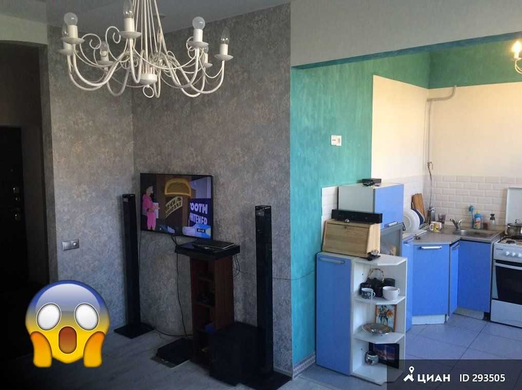 Вот он — идеальный пример всех примеров! В одной комнате все: диван и кровать в миллиметре друг от друга, барные стойки, шкафы-купе, и, конечно, (куда же без них) гипсокартон, натяжной потолок и точечные светильники! Ну очень перегруженный всем дом!