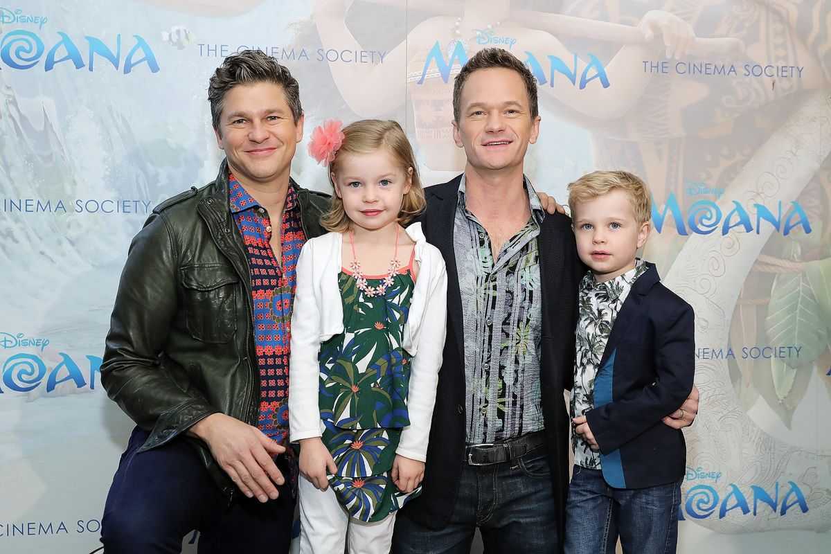 Дэвид Бартка, Харпер Грейс Бартка-Харрис, Нил Патрик Харрис и Гидеон Скотт Бартка-Харрис на премьере мультфильма «Моана» в Нью-Йорке, 20 ноября 2016 г.