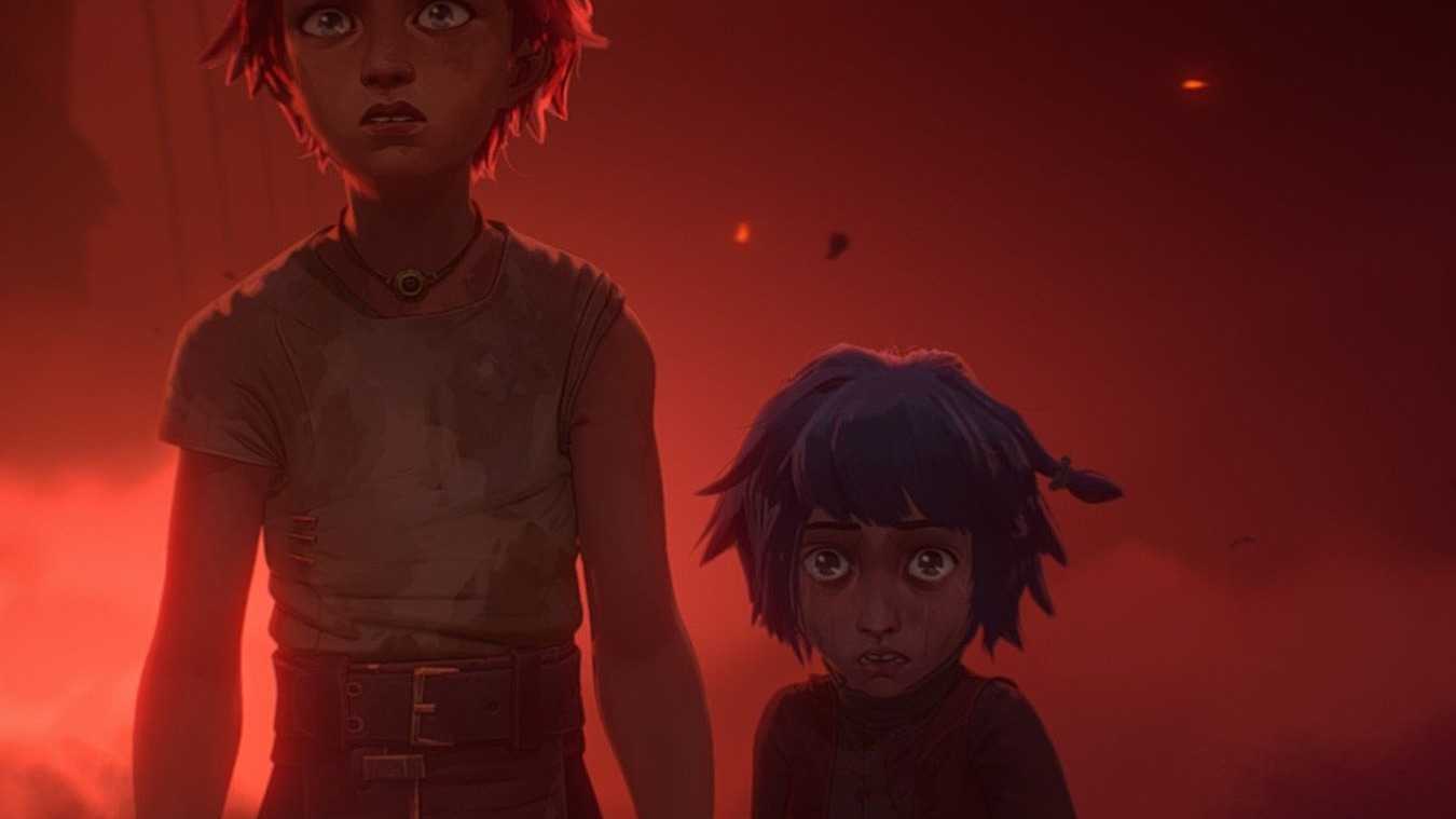 Сейчас начнётся заключительная и самая эмоциональная сцена сериала. Джинкс захватила Вай в плен и сделала ей чистосердечное признание, что только благодаря старшей сестре ей удалось выжить и стать тем, кем она стала. Затем в кадре появляются Силко и Кейтлин — они тоже оказались пленниками Джинкс.