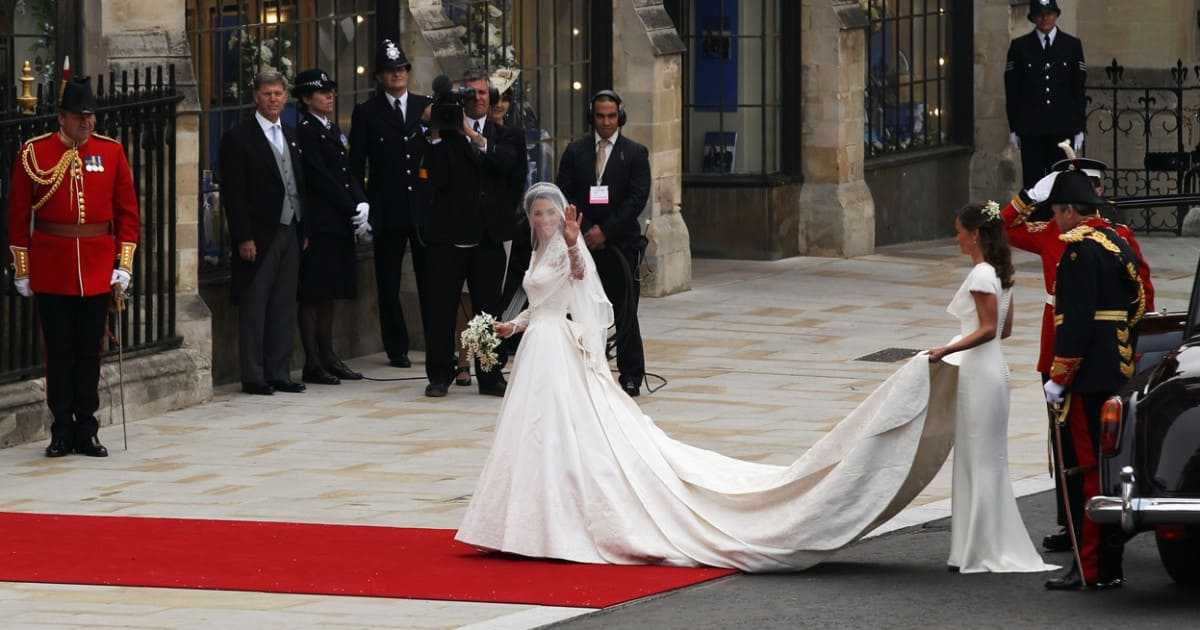 За их свадьбой, которая состоялась 29 апреля 2011 г., наблюдали миллионы глаз по всему миру. 29-летняя невеста была обворожительна: атласное платье от Сары Бертон сидело идеально на ее хрупкой фигуре, а изысканная алмазная тиара выгодно смотрелась на ее густых каштановых волосах.