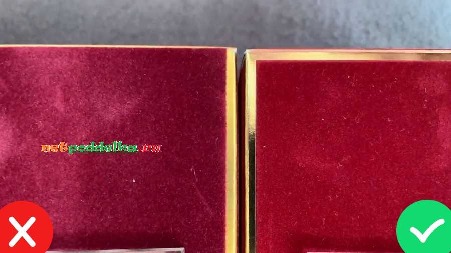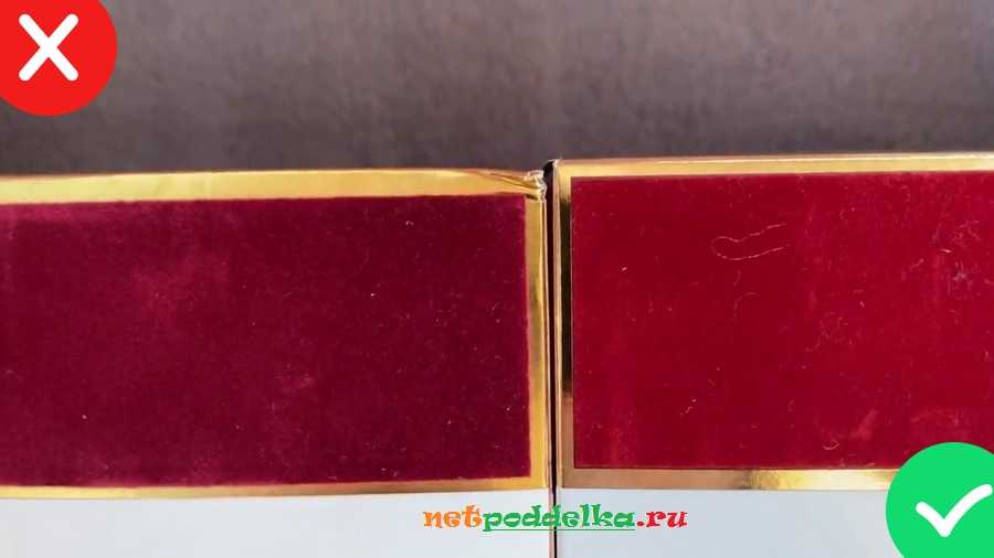 Необходимо уделить внимание переходу между золотистой полосочкой и бархатным покрытием. У оригинала все четко и материалы не накладываются друг на друга