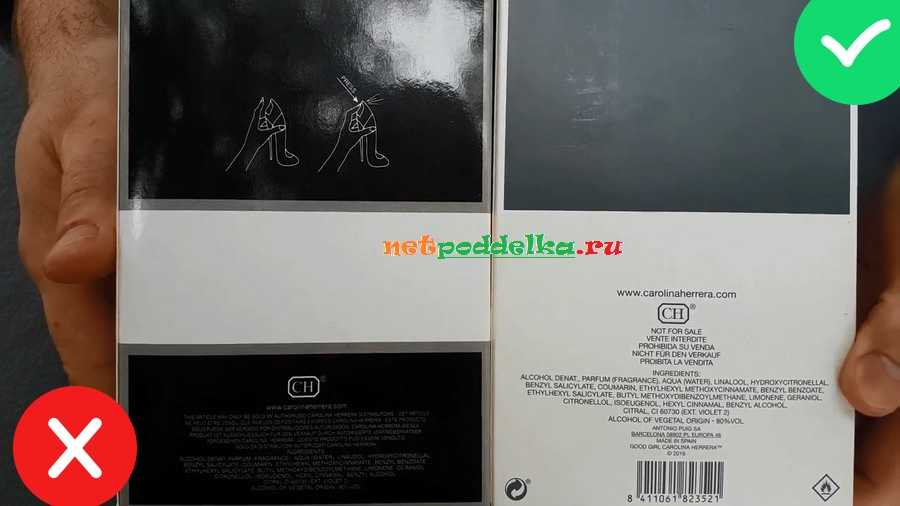 Выявить фальсификат можно по размеру упаковки. Carolina Herrera подделка нередко имеет коробку меньше или больше, чем у оригинального парфюма.