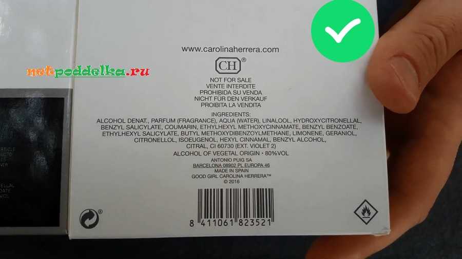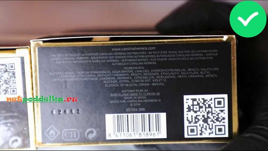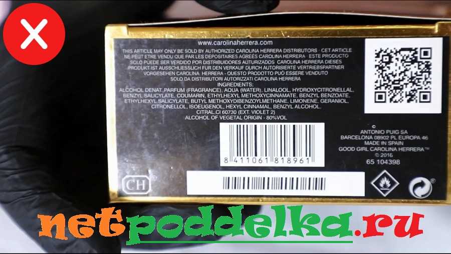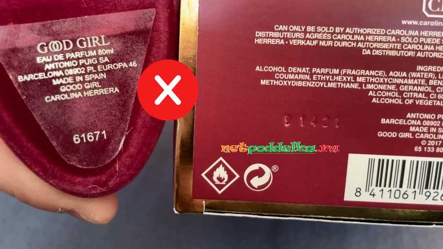 Подделка Carolina Herrera Good Girl часто не имеет Batch code. Поэтому с него лучше всего начинать проверку подлинности духов. Отсутствие Batch code ‒ явный признак фальшивки.
