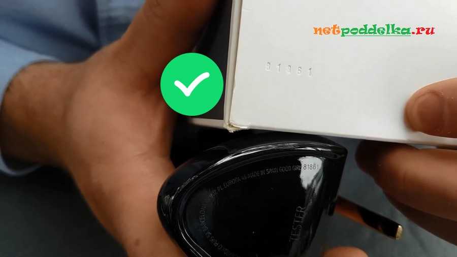 На фальшивках фейкмейкеры также проставляют Batch code. Однако они часто забывают нанести его на упаковку. Поэтому серийный номер у фальшивок часто бывает лишь на туфельке. При этом располагается он не так, как у настоящего парфюма.