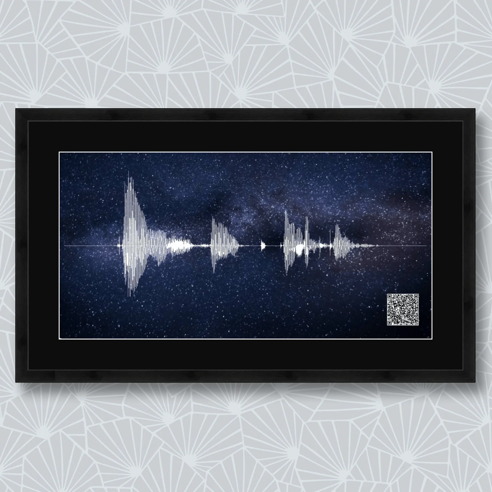 Стильный способ запечатлеть признание в любви или трогательные пожелания – конвертация голоса в диаграмме печатается на специальном стекле и помещается в рамку.