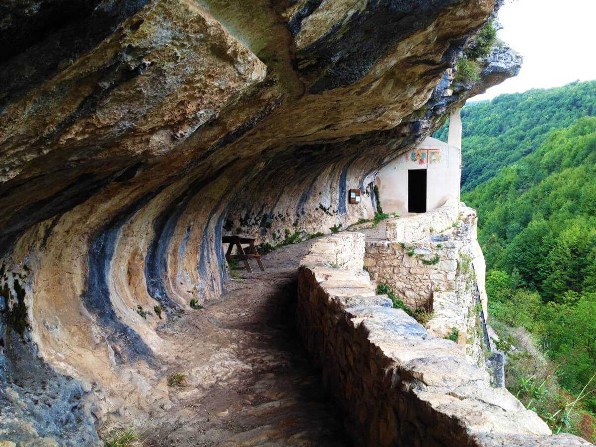 Природные сцены снимались на натуре в Абруццо (регион к востоку от Рима, примыкающий к Адриатическому морю). Абруццо известен своими причудливыми скальными образованиями. Съемки прошли в обители Santo Spirito a Majella в Роккамориче в провинции Пескара. Дикая красота этих мест эффектно смотрелась в кадре.