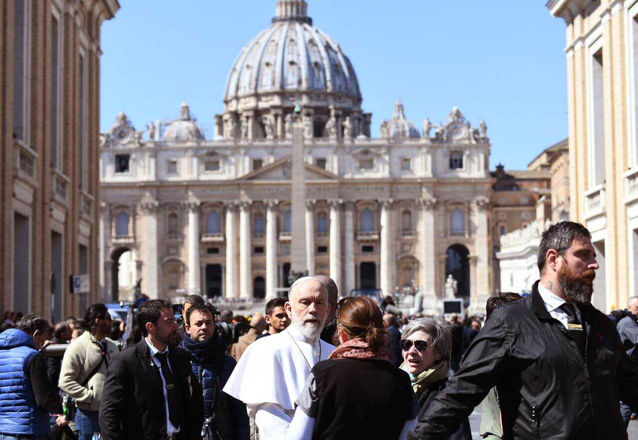В марте 2019 года съемочная группа снимала ряд сцен с участием Джона Малковича на площади Святого Петра и прилегающей к ней улице Примирения (Via della Conciliazione). Малкович был окружен десятками статистов с желтыми розами в руках. Так снималась сцена «благословления роз» – торжественная церемония в католичестве, которая приходится на четвертое воскресенье Великого поста и символизирует радость грядущей Пасхи.