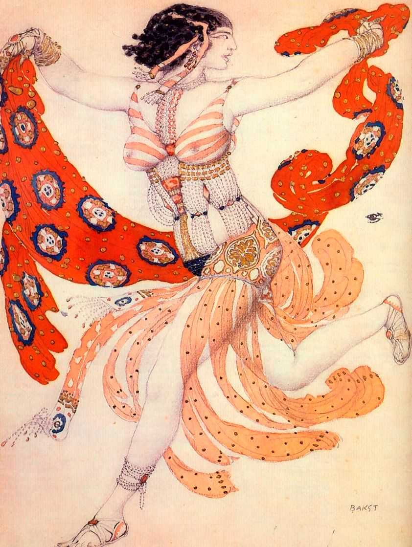 Стиль Бакста сформировался на рубеже веков в оформлении журнала «Мир искусства». Это был изысканно-графичный, ирреальный стиль, покоривший Париж. С 1902 г. Бакст работал для Эрмитажного и Александринского театров. С 1911 г. был художественным директором «Русских сезонов» С. Дягилева. В 1911-1913 гг. принимал участие в постановках И. Рубинштейн и А.П. Павловой.