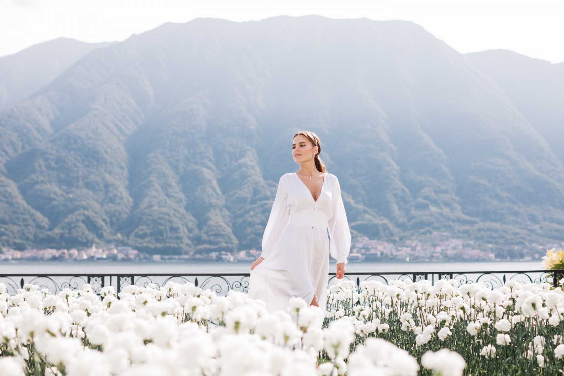 Пожалуй, самая яркая и красочная церемония этой осени была именно у Даши: жених и невеста в платье Elie Saab обменялись кольцами на вилле Бальбиано на озере Комо, в окружении белоснежных цветов.