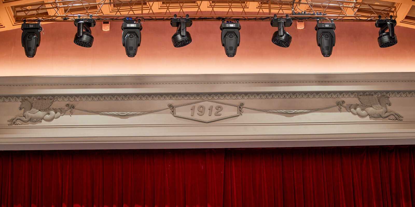 Еще одно изменение в кинозале — барельеф над экраном, изображающий двух симметричных морских коней с рыбьими хвостами (гиппокампов), которые держат вывеску с датой «1912» — годом перестройки кинотеатра по проекту Шехтеля. В советскую эпоху оригинал снесли. Реставраторы воссоздали барельеф по фотографиям и аналогам.