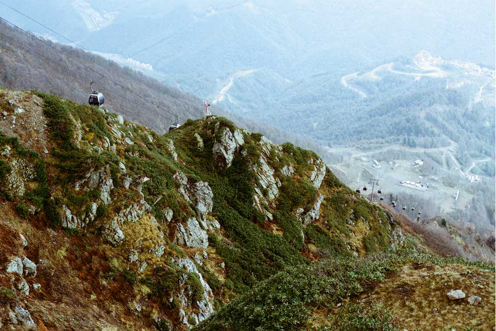 Следующая высота — «Горная Олимпийская деревня» (1100 метров). Заключительный спуск по канатной дороге «Олимпия».