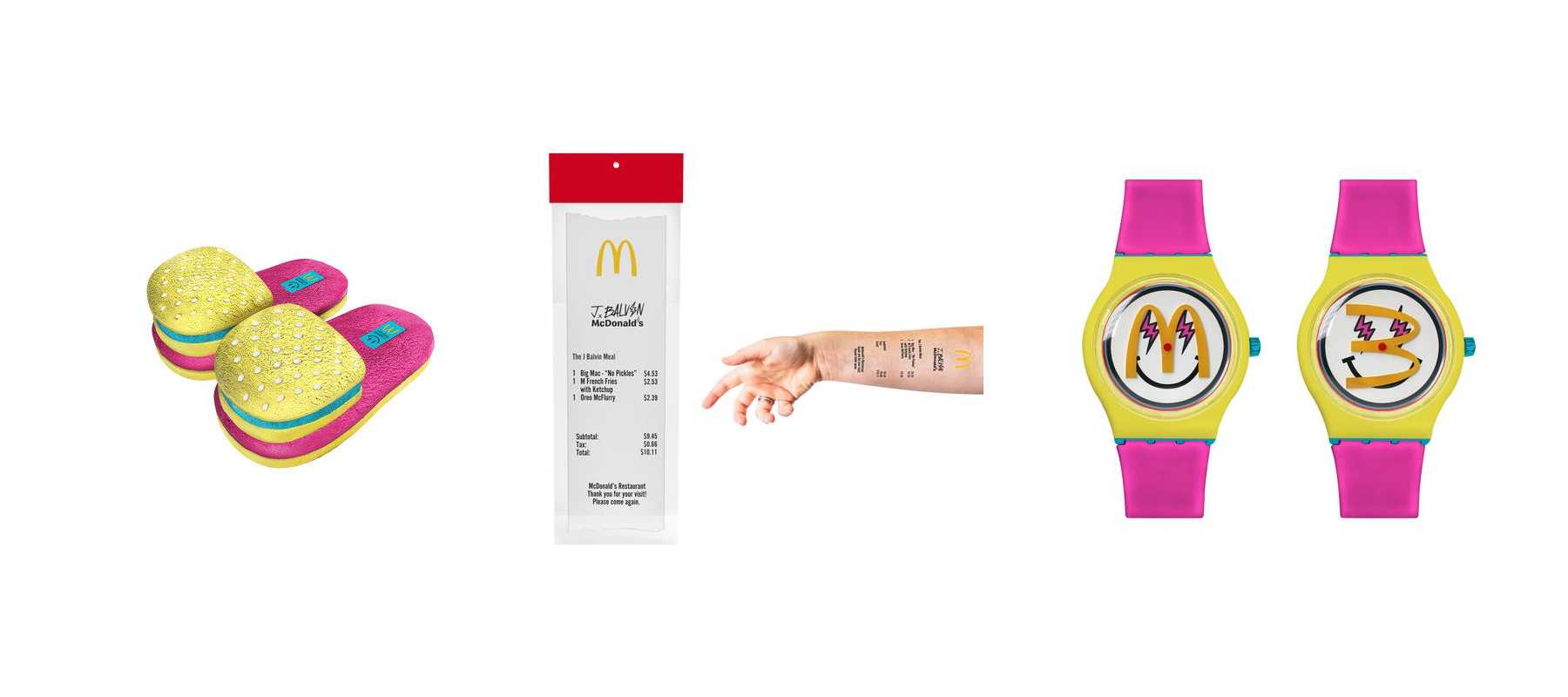 Этот необычный мерч родился в результате сотрудничества Макдональдса и регги-певца J Balvin. В коллекции – множество забавных цветных панамок, очков, часов и пледов. Есть даже переводная татуировка в виде чека из Макдоналдса и мягкие тапочки в форме бургеров. Для настоящих ценителей!